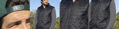 - Two angled zipper chest pockets