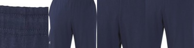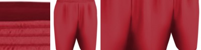6 oz. 100% polyester; Elastic waistband with black drawcord; Faux fly; Knee piping; Back pocket; Side zipper pockets; Hem cuffs;