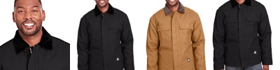 10 oz., heavy-duty cotton duck; Heavyweight quilt-lined taffeta liner; Water-repellent finish; Triple-needle stitched main seam; Heavy-duty brass zipper with storm flap; Collar snaps for optional hood; Two chest pockets with hook/loop closures; Pleated elbows and action back; Knit cuffs and waistband; Manufactured in a LEED (Leadership in Energy and Environmental Design) certified factory;