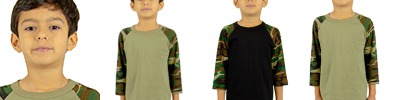 SHRAGCY Youth Three-Quarter Sleeve Camo Raglan T-Shirt