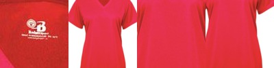 - Double thickness yoke and set-in mitered rib V-neck with bar tac