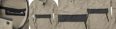 - Stretch binding at collar, cuffs and pocket