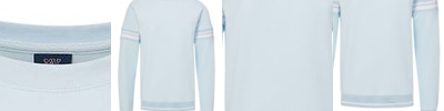 - Striped ribbed-knit inset on sleeves