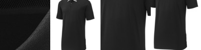 Fabric: 3.8-ounce, 100% polyester jersey Features: Moisture-wicking, removable tag for comfort and relabeling