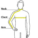 | Chest | 32-35 | 35-37 1/2 | 37 1/2-41 | 41-44 | 44-48 1/2 | 48 1/2 -53 1/2 | 53 1/2 - 58 | 58-63 |